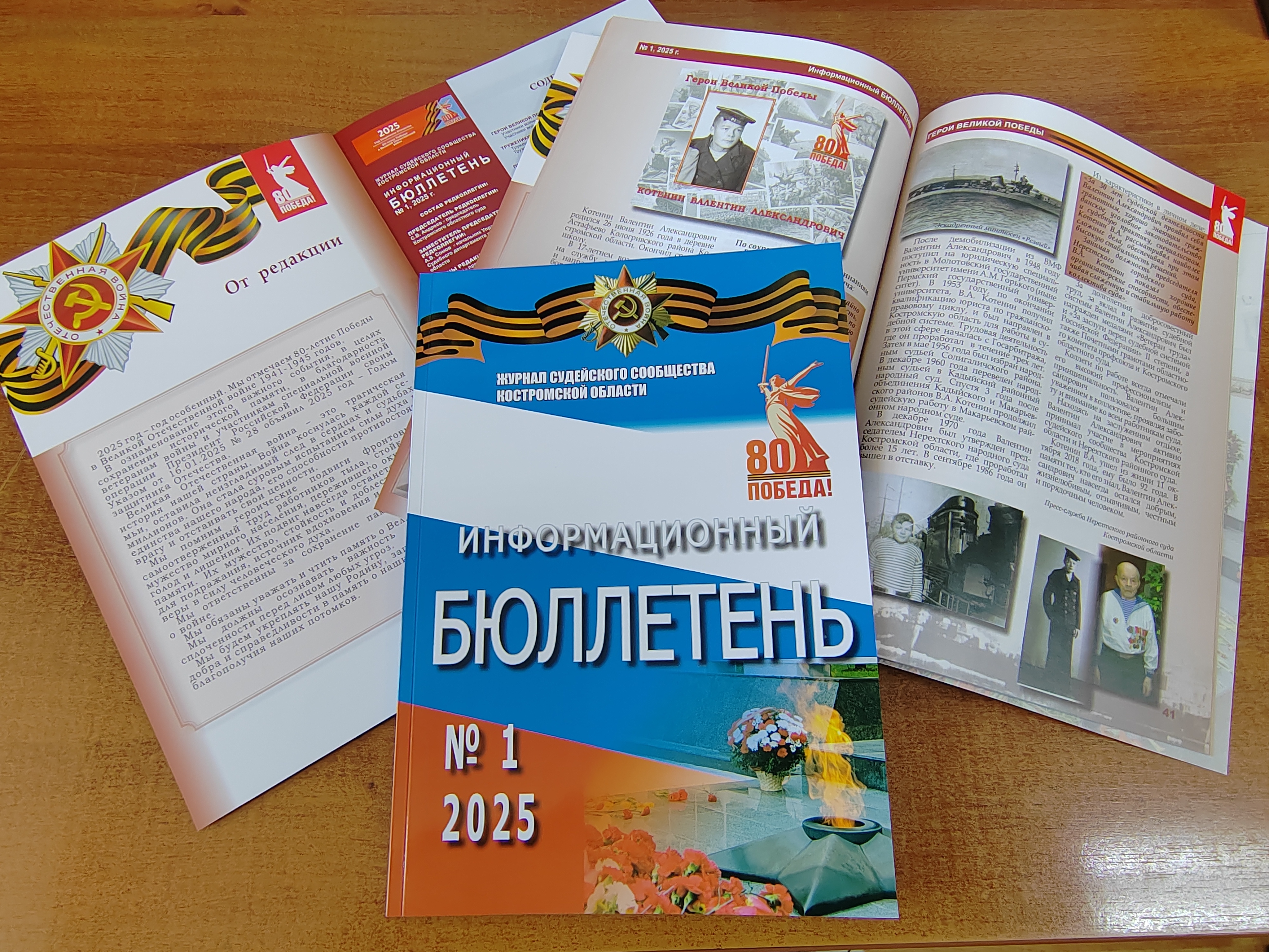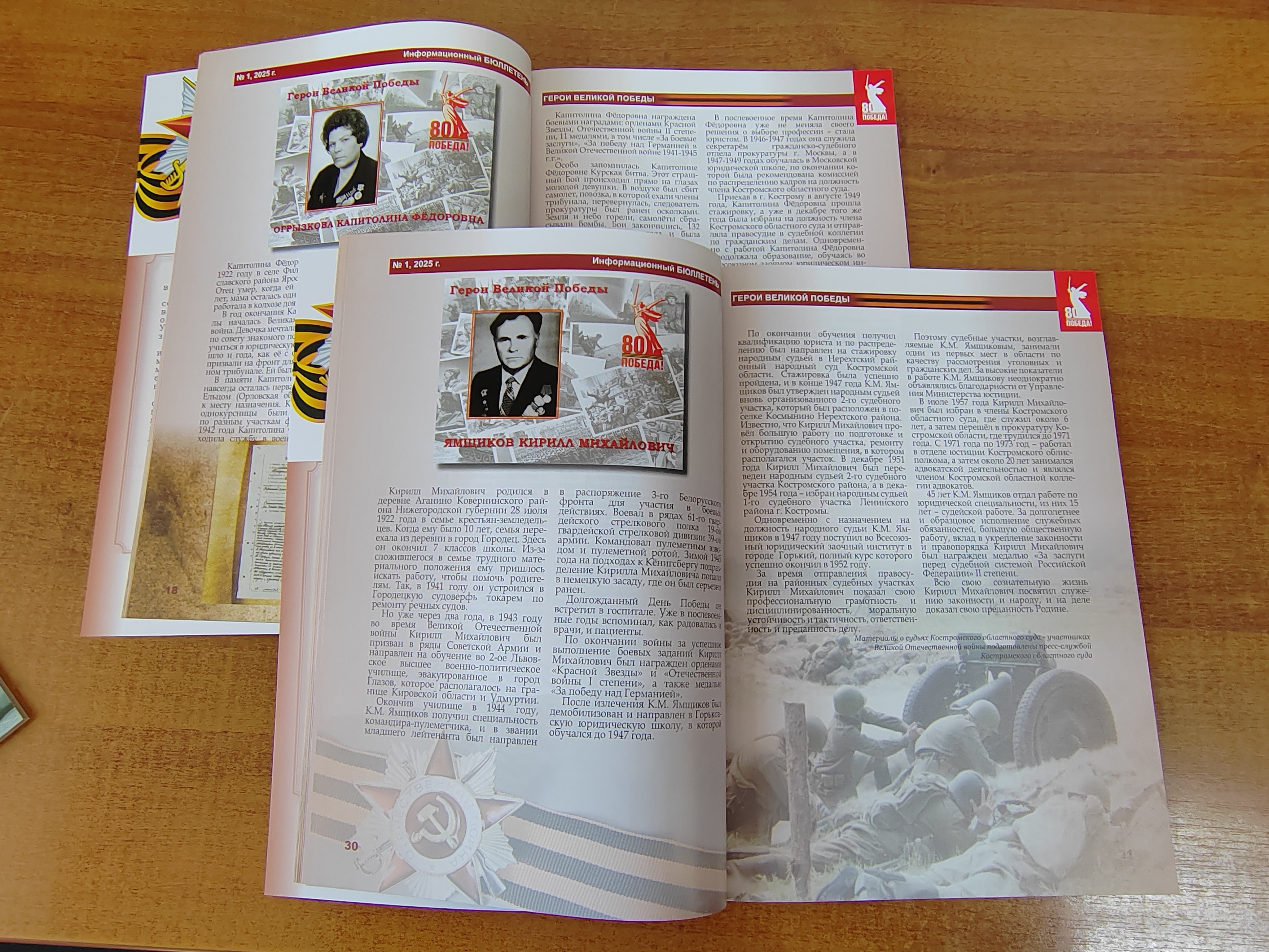 Вышел в свет специальный номер журнала судейского сообщества Костромской области «Информационный бюллетень № 1.2025», полностью посвящённый 80-й годовщине Победы в Великой Отечественной войне. Страницы журнала повествуют о судьбах и подвигах ветеранов Великой Отечественной войны 1941-1945 г.г. и тружеников тыла, которые в разные годы работали в судебной системе региона. Уделено внимание в журнале и мероприятиям, которые были проведены судами Костромской области в рамках празднования80-летияВеликой Победы.
